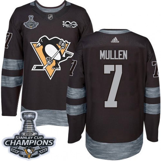 Men's Adidas Pittsburgh Penguins #7 Joe Mullen Premier Black 1917-2017 100th Anniversary 2017 Stanley Cup Champions NHL Jersey