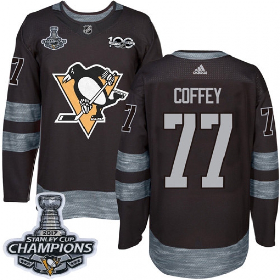 Men's Adidas Pittsburgh Penguins #77 Paul Coffey Premier Black 1917-2017 100th Anniversary 2017 Stanley Cup Champions NHL Jersey