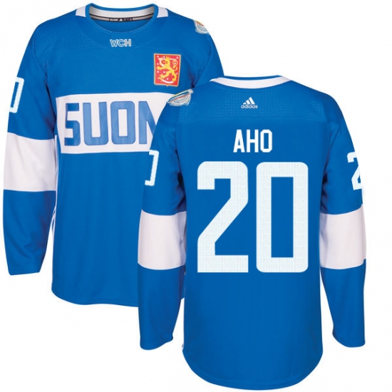 Men's Adidas Team Finland #20 Sebastian Aho Authentic Blue Away 2016 World Cup of Hockey Jersey