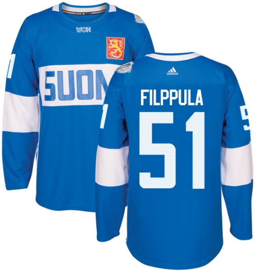 Men's Adidas Team Finland #51 Valtteri Filppula Authentic Blue Away 2016 World Cup of Hockey Jersey
