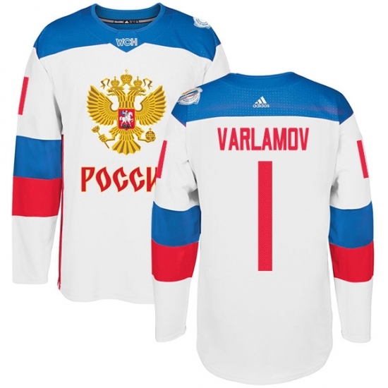 Men's Adidas Team Russia #1 Semyon Varlamov Premier White Home 2016 World Cup of Hockey Jersey