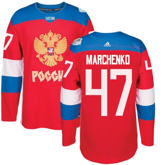 Home>NHL>Team Russia>Alexey Marchenko>Men's Adidas Team Russia #47 Alexey Marchenko Premier Red Away 2016 World Cup of Hockey Jersey
