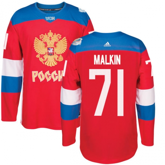 Men's Adidas Team Russia #71 Evgeni Malkin Authentic Red Away 2016 World Cup of Hockey Jersey