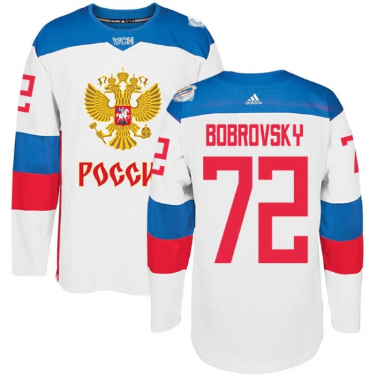 Home>NHL>Team Russia>Sergei Bobrovsky>Men's Adidas Team Russia #72 Sergei Bobrovsky Authentic White Home 2016 World Cup of Hockey Jersey