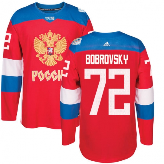 Men's Adidas Team Russia #72 Sergei Bobrovsky Premier Red Away 2016 World Cup of Hockey Jersey