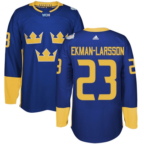 Home>NHL>Team Sweden>Oliver Ekman-Larsson>Men's Adidas Team Sweden #23 Oliver Ekman-Larsson Authentic Royal Blue Away 2016 World Cup of Hockey Jersey