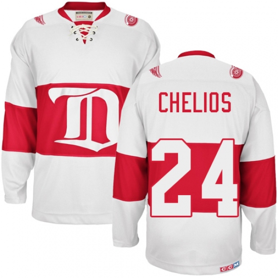 Men's CCM Detroit Red Wings #24 Chris Chelios Authentic White Winter Classic Throwback NHL Jersey
