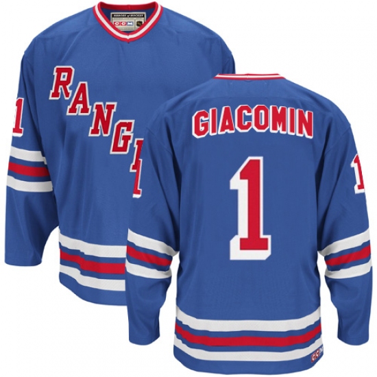 Men's CCM New York Rangers #1 Eddie Giacomin Authentic Royal Blue Heroes of Hockey Alumni Throwback NHL Jersey