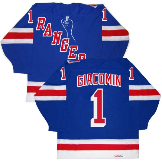 Home>NHL>New York Rangers>Eddie Giacomin>Men's CCM New York Rangers #1 Eddie Giacomin Authentic Royal Blue New Throwback NHL Jersey