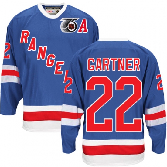 Men's CCM New York Rangers #22 Mike Gartner Authentic Royal Blue 75TH Throwback NHL Jersey