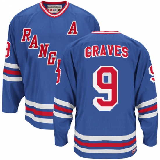 Men's CCM New York Rangers #9 Adam Graves Authentic Royal Blue Heroes of Hockey Alumni Throwback NHL Jersey