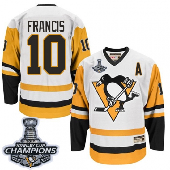 Home>NHL>Pittsburgh Penguins>Ron Francis>Men's CCM Pittsburgh Penguins #10 Ron Francis Authentic White Throwback 2017 Stanley Cup Champions NHL Jersey