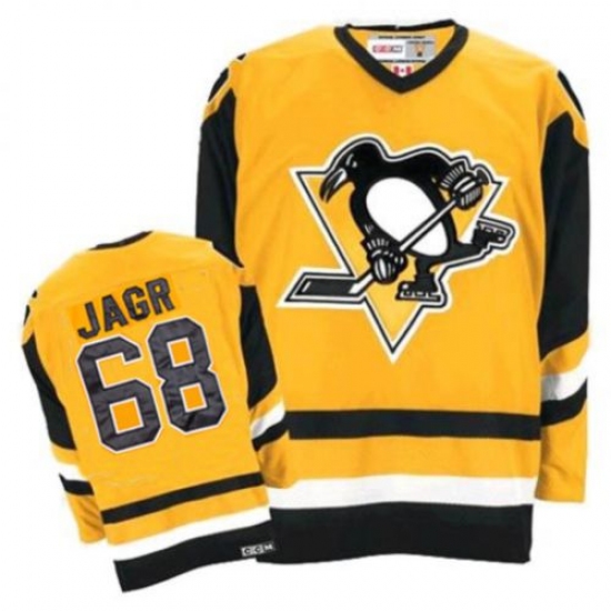 Men's CCM Pittsburgh Penguins #68 Jaromir Jagr Authentic Yellow Throwback NHL Jersey