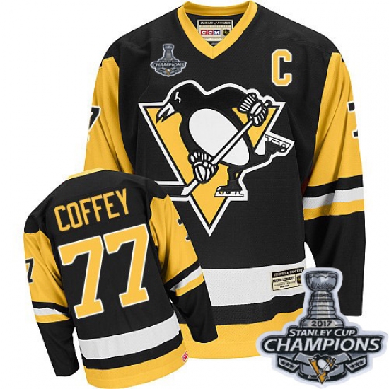 Men's CCM Pittsburgh Penguins #77 Paul Coffey Premier Black Throwback 2017 Stanley Cup Champions NHL Jersey