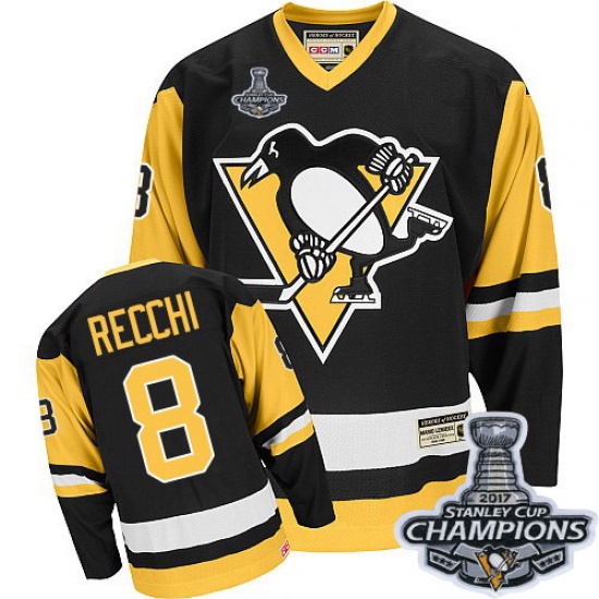 Men's CCM Pittsburgh Penguins #8 Mark Recchi Authentic Black Throwback 2017 Stanley Cup Champions NHL Jersey