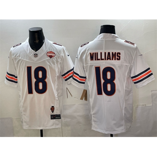 >Men's Chicago Bears #18 Caleb Williams White F.U.S.E. 2025 NFC North Champions & Illinois Stitched Football Jersey