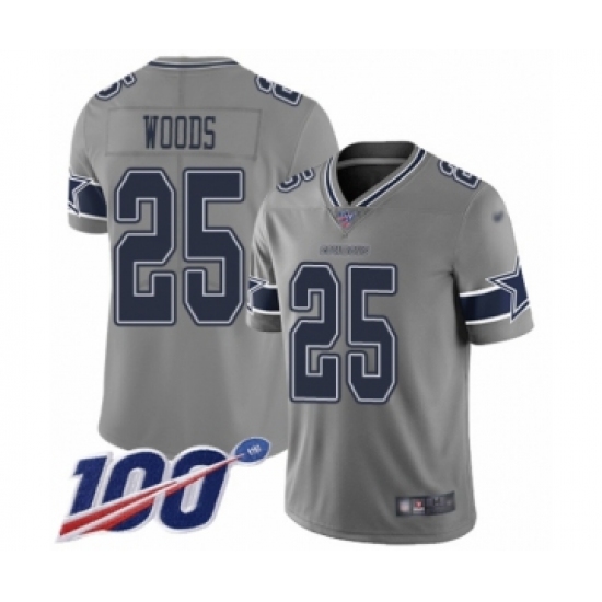 Men's Dallas Cowboys #25 Xavier Woods Limited Gray Inverted Legend 100th Season Football Jersey