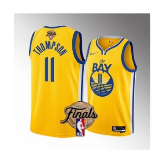 Men's Golden State Warriors #11 Klay Thompson 2022 Yellow NBA Finals Stitched Jersey
