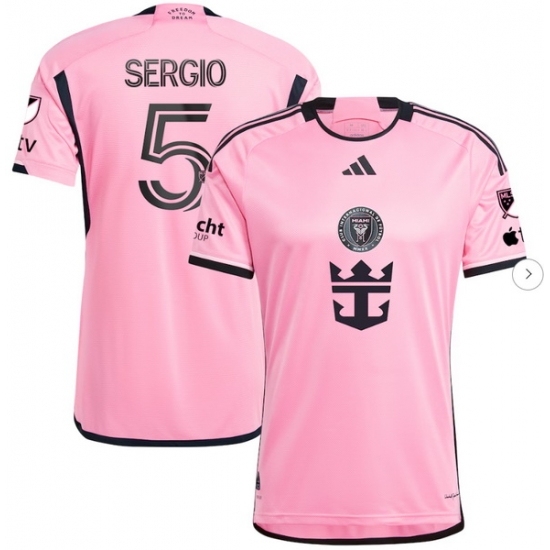 Men's Inter Miami CF #5 Sergio 25-26 Pink Home Soccer Jersey Suit