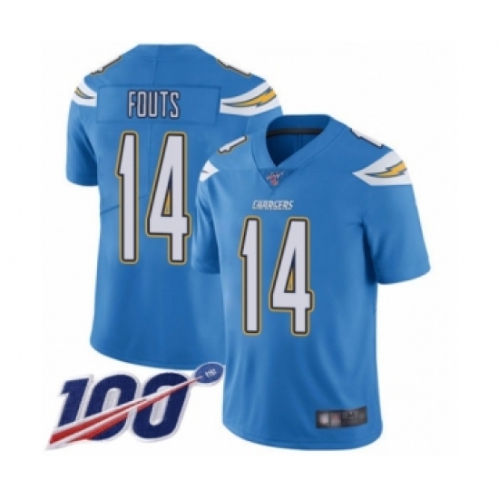 Men's Los Angeles Chargers #14 Dan Fouts Electric Blue Alternate Vapor Untouchable Limited Player 100th Season Football Jersey