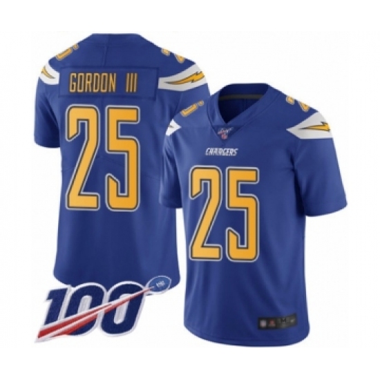 >Men's Los Angeles Chargers #25 Melvin Gordon Limited Electric Blue Rush Vapor Untouchable 100th Season Football Jersey