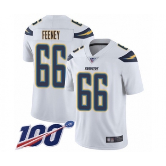 Men's Los Angeles Chargers #66 Dan Feeney White Vapor Untouchable Limited Player 100th Season Football Jersey