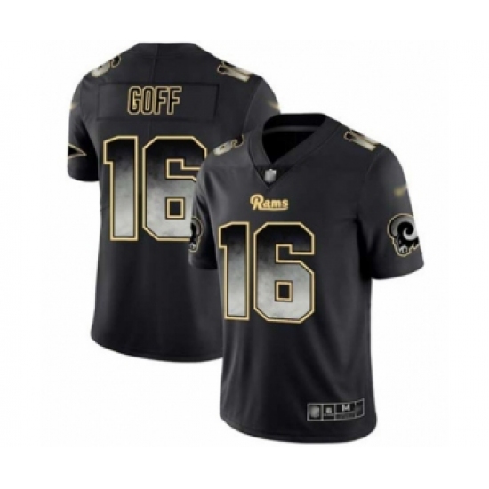>Men's Los Angeles Rams #16 Jared Goff Limited Black Smoke Fashion Football Jersey