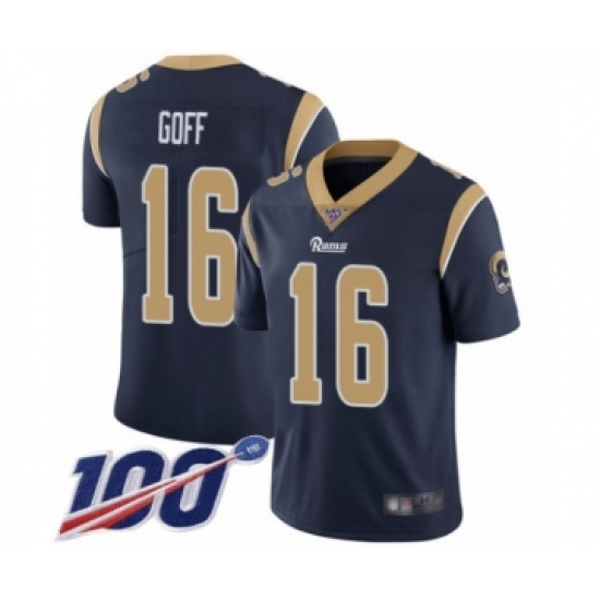 >Men's Los Angeles Rams #16 Jared Goff Navy Blue Team Color Vapor Untouchable Limited Player 100th Season Football Jersey