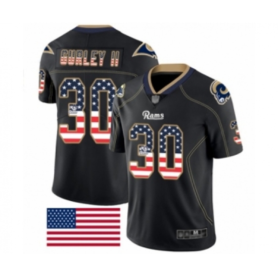 Men's Los Angeles Rams #30 Todd Gurley Limited Black Rush USA Flag Football Jersey