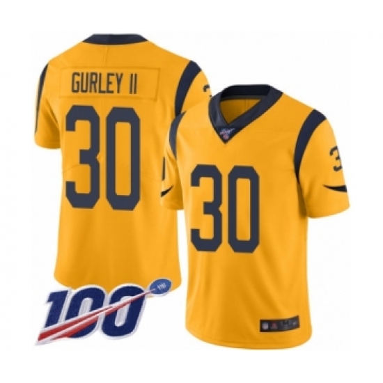 >Men's Los Angeles Rams #30 Todd Gurley Limited Gold Rush Vapor Untouchable 100th Season Football Jersey
