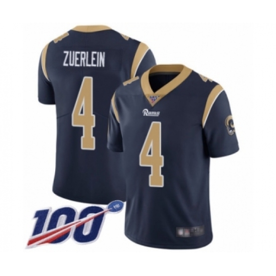 Men's Los Angeles Rams #4 Greg Zuerlein Navy Blue Team Color Vapor Untouchable Limited Player 100th Season Football Jersey