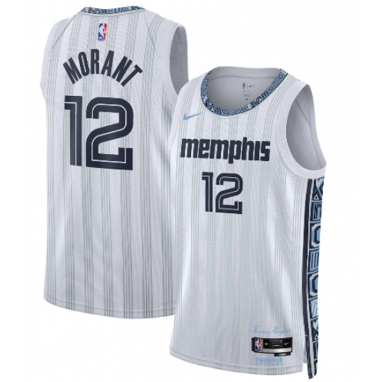 Youth Memphis Grizzlies #12 Ja Morant Swingman White Basketball Jersey - City Edition