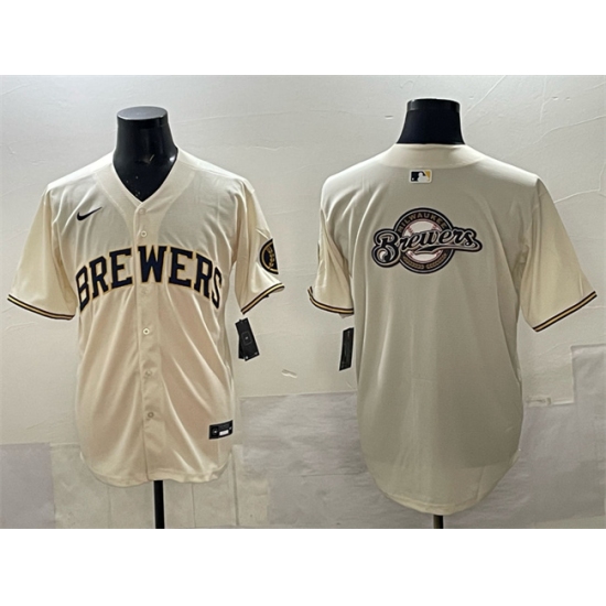 Men's Milwaukee Brewers Team Big Logo Cream Home Limited Stitched Jersey