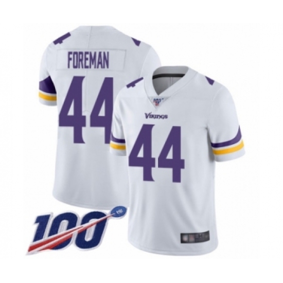 Men's Minnesota Vikings #44 Chuck Foreman White Vapor Untouchable Limited Player 100th Season Football Jersey