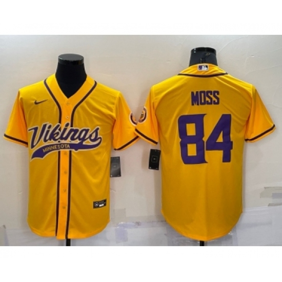 Men's Minnesota Vikings #84 Randy Moss Yellow With Patch Cool Base Stitched Baseball Jersey