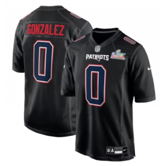 Men's New England Patriots #0 Christian Gonzalez Black Super Bowl LX Carbon Fashion Jersey
