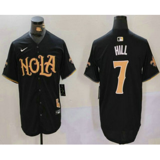>Men's New Orleans Saints #7 Taysom Hill Black Nola Baseball Jersey