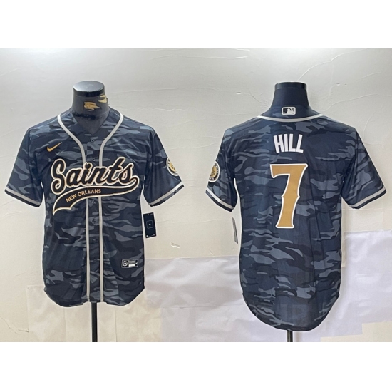 Men's New Orleans Saints #7 Taysom Hill Grey Camo With Cool Base Stitched Baseball Jersey