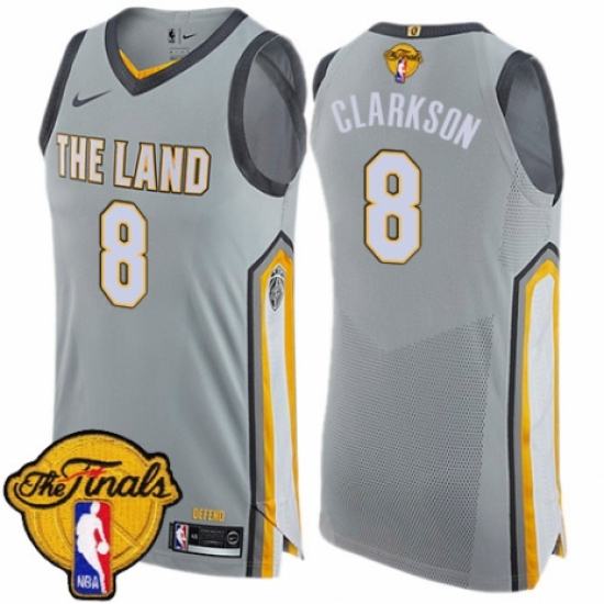 Men's Nike Cleveland Cavaliers #8 Jordan Clarkson Authentic Gray 2018 NBA Finals Bound NBA Jersey - City Edition