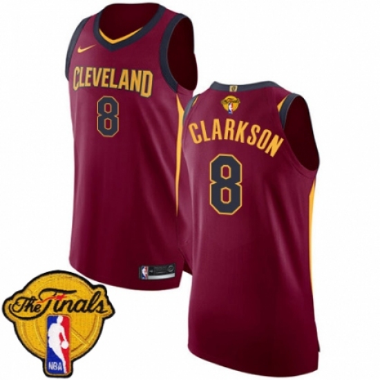 Men's Nike Cleveland Cavaliers #8 Jordan Clarkson Authentic Maroon 2018 NBA Finals Bound NBA Jersey - Icon Edition