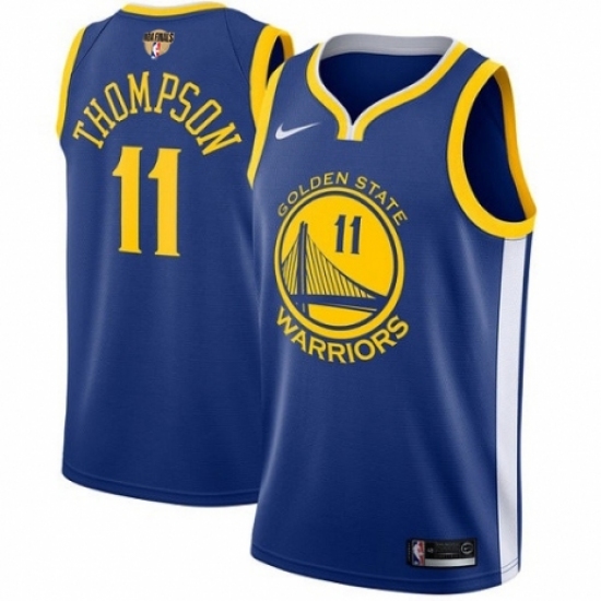 Men's Nike Golden State Warriors #11 Klay Thompson Swingman Royal Blue Road 2018 NBA Finals Bound NBA Jersey - Icon Edition