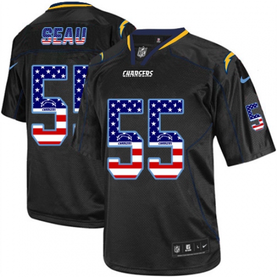 Men's Nike Los Angeles Chargers #55 Junior Seau Elite Black USA Flag Fashion NFL Jersey
