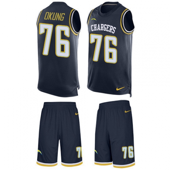 Home>NFL>Los Angeles Chargers>Russell Okung>Men's Nike Los Angeles Chargers #76 Russell Okung Limited Navy Blue Tank Top Suit NFL Jersey