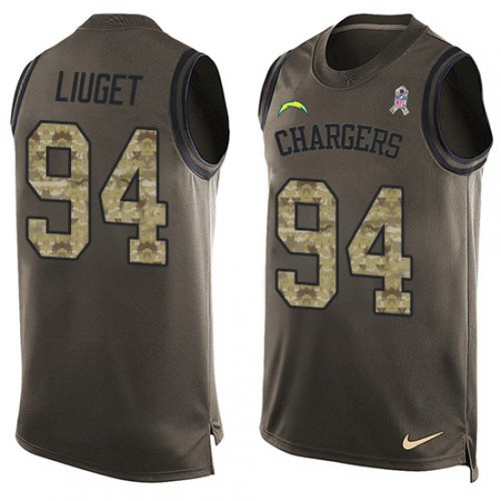 Home>NFL>Los Angeles Chargers>Corey Liuget>Men's Nike Los Angeles Chargers #94 Corey Liuget Limited Green Salute to Service Tank Top NFL Jersey