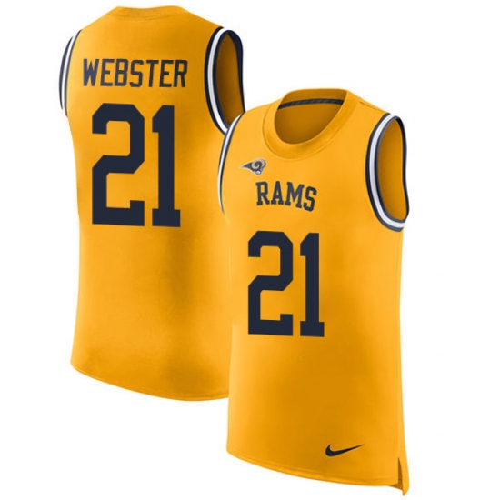 Home>NFL>Los Angeles Rams>Kayvon Webster>Men's Nike Los Angeles Rams #21 Kayvon Webster Limited Gold Rush Player Name & Number Tank Top NFL Jersey