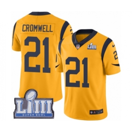 >Men's Nike Los Angeles Rams #21 Nolan Cromwell Limited Gold Rush Vapor Untouchable Super Bowl LIII Bound NFL Jersey