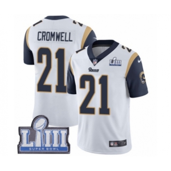 >Men's Nike Los Angeles Rams #21 Nolan Cromwell White Vapor Untouchable Limited Player Super Bowl LIII Bound NFL Jersey