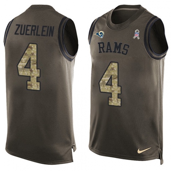 Home>NFL>Los Angeles Rams>Greg Zuerlein>Men's Nike Los Angeles Rams #4 Greg Zuerlein Limited Green Salute to Service Tank Top NFL Jersey