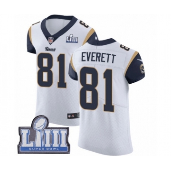 >Men's Nike Los Angeles Rams #81 Gerald Everett White Vapor Untouchable Elite Player Super Bowl LIII Bound NFL Jersey