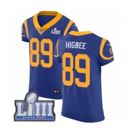 >Men's Nike Los Angeles Rams #89 Tyler Higbee Royal Blue Alternate Vapor Untouchable Elite Player Super Bowl LIII Bound NFL Jersey